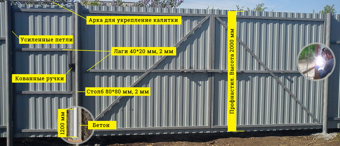 Столбы: 60х60х3000 мм. Толщина металла 2 мм.